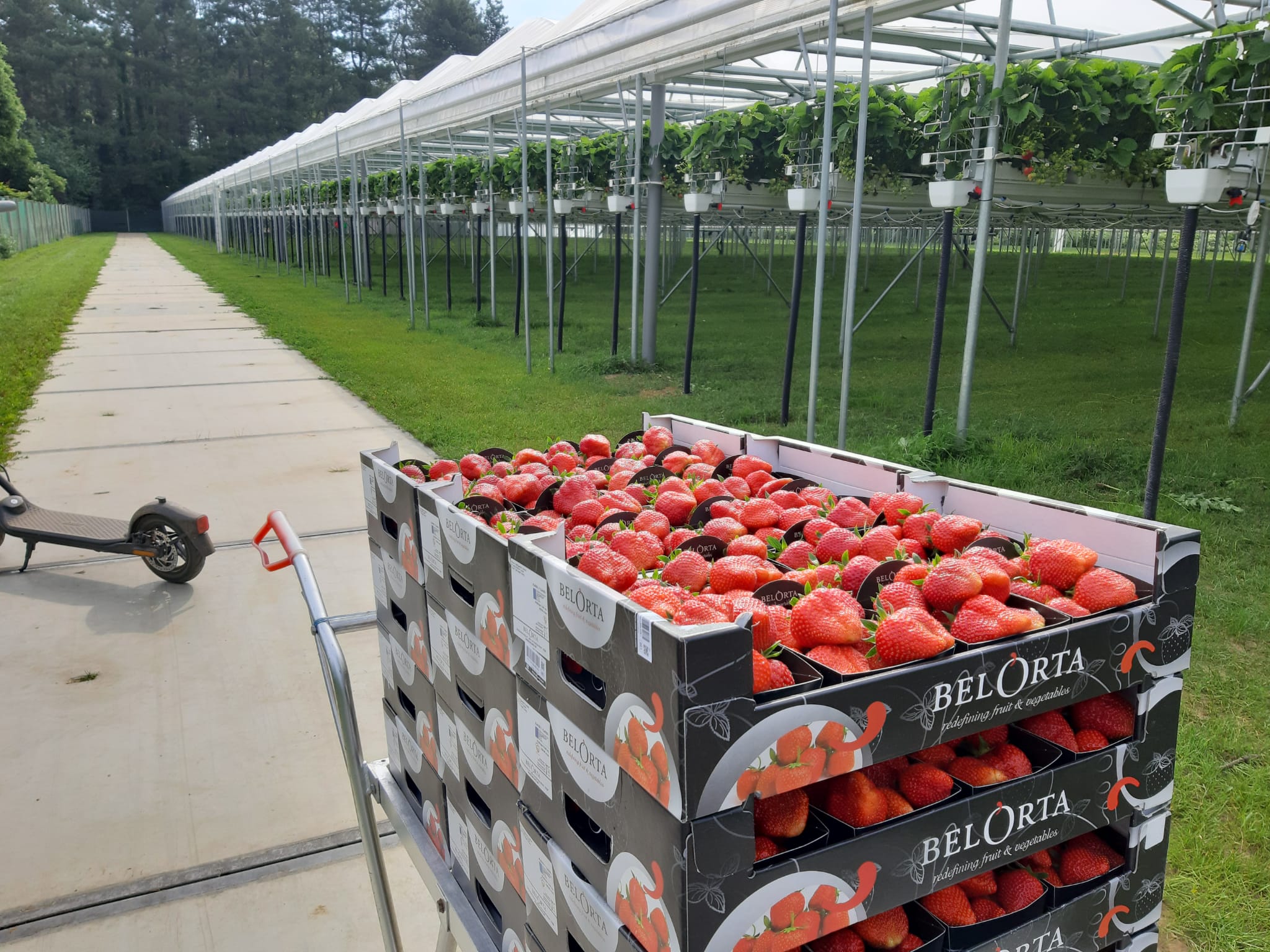En 2014 el invernadero fue convertido para ese fin, y esto resultó ser un éxito. Gert Reijnders, junto con su esposa Inge y su hijo Robbe, produce 150.000 kg de fresas al año. No solo se venden en Bélgica; el resto de Europa también puede disfrutarlas.