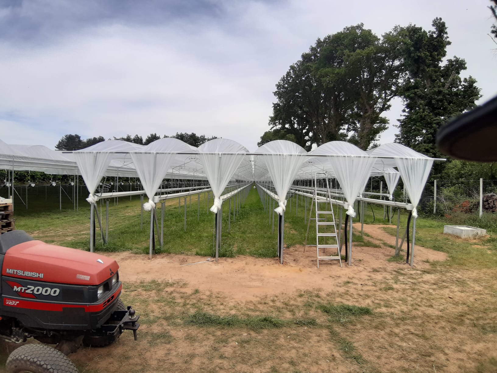 Se decidió expandirse. Junto con los expertos de Meteor Systems, se decidió optar por la Mini-Air and Mini tunnel fruit cover, con una superficie total de 5,300 m2. Además de las cubiertas, se suministró un completo sistema de cultivo suspendido GM04, que incluía canaletas de cultivo y sistema de riego por goteo. Las cubiertas de fruta se completaron a finales de 2021.